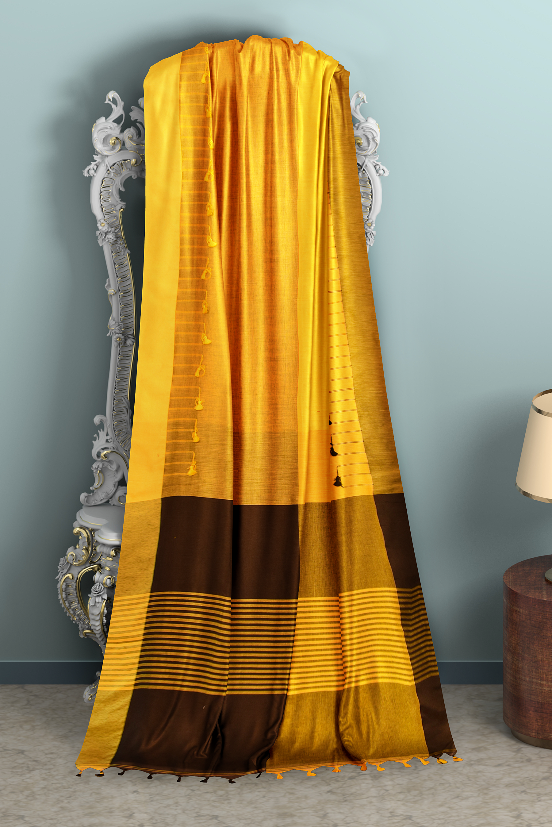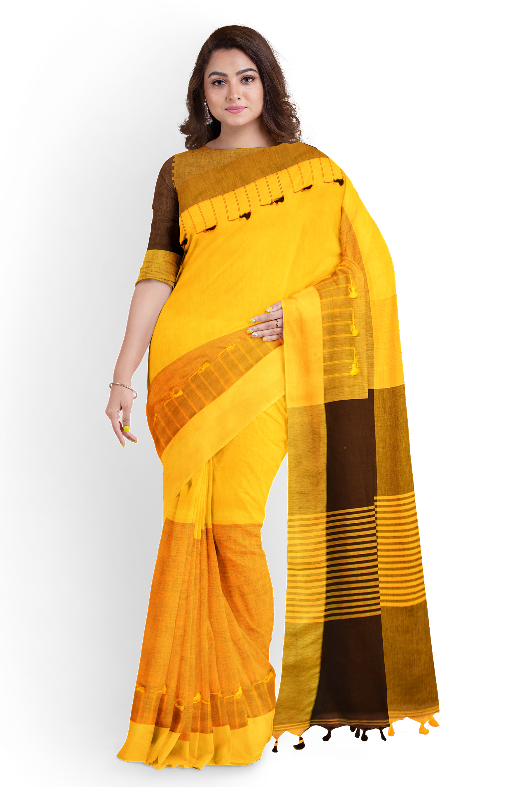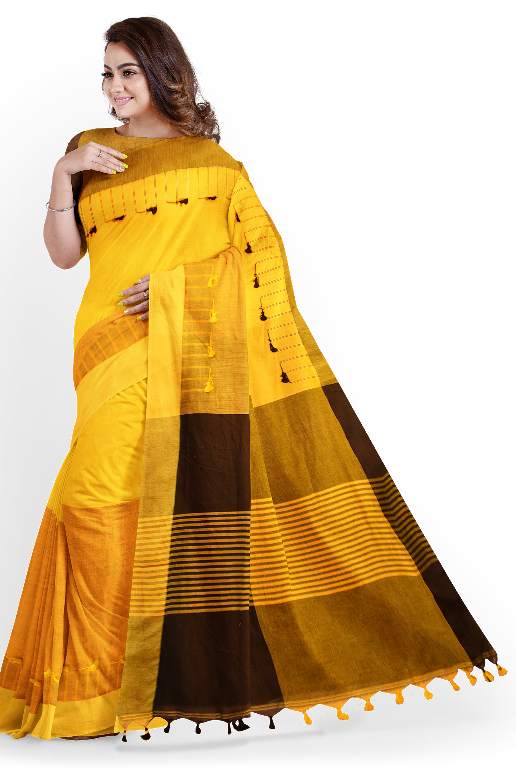 Moitreyee Black & Yellow Cotton Ikkat Saree – Handloom Elegance