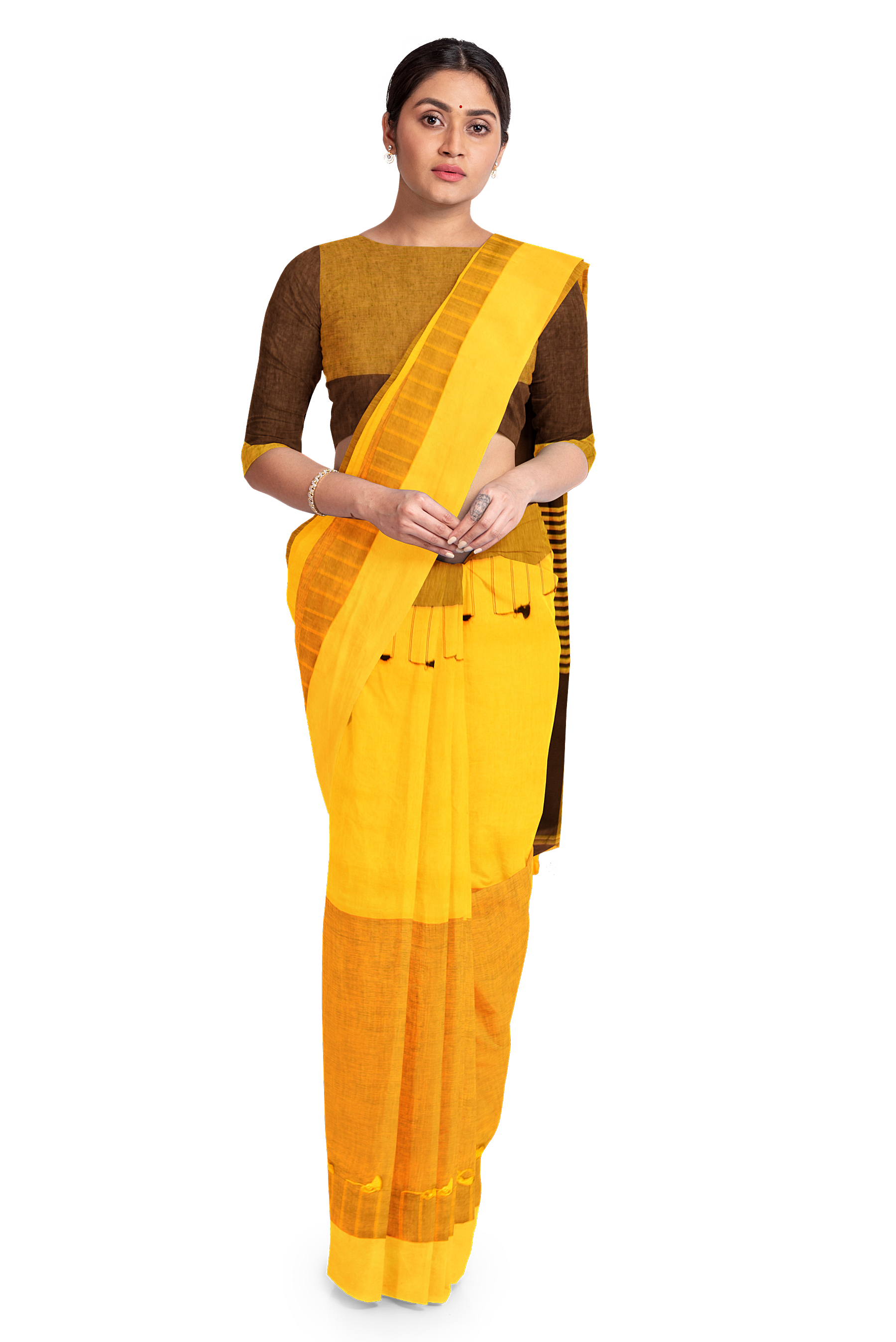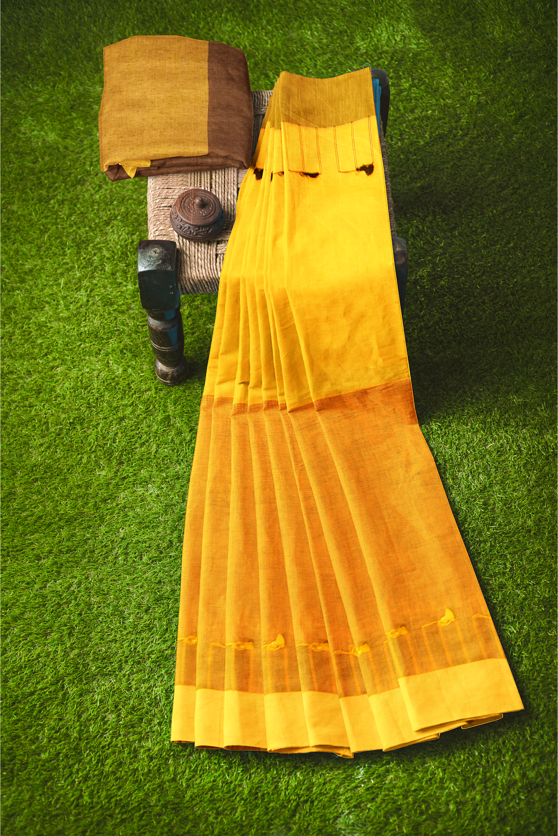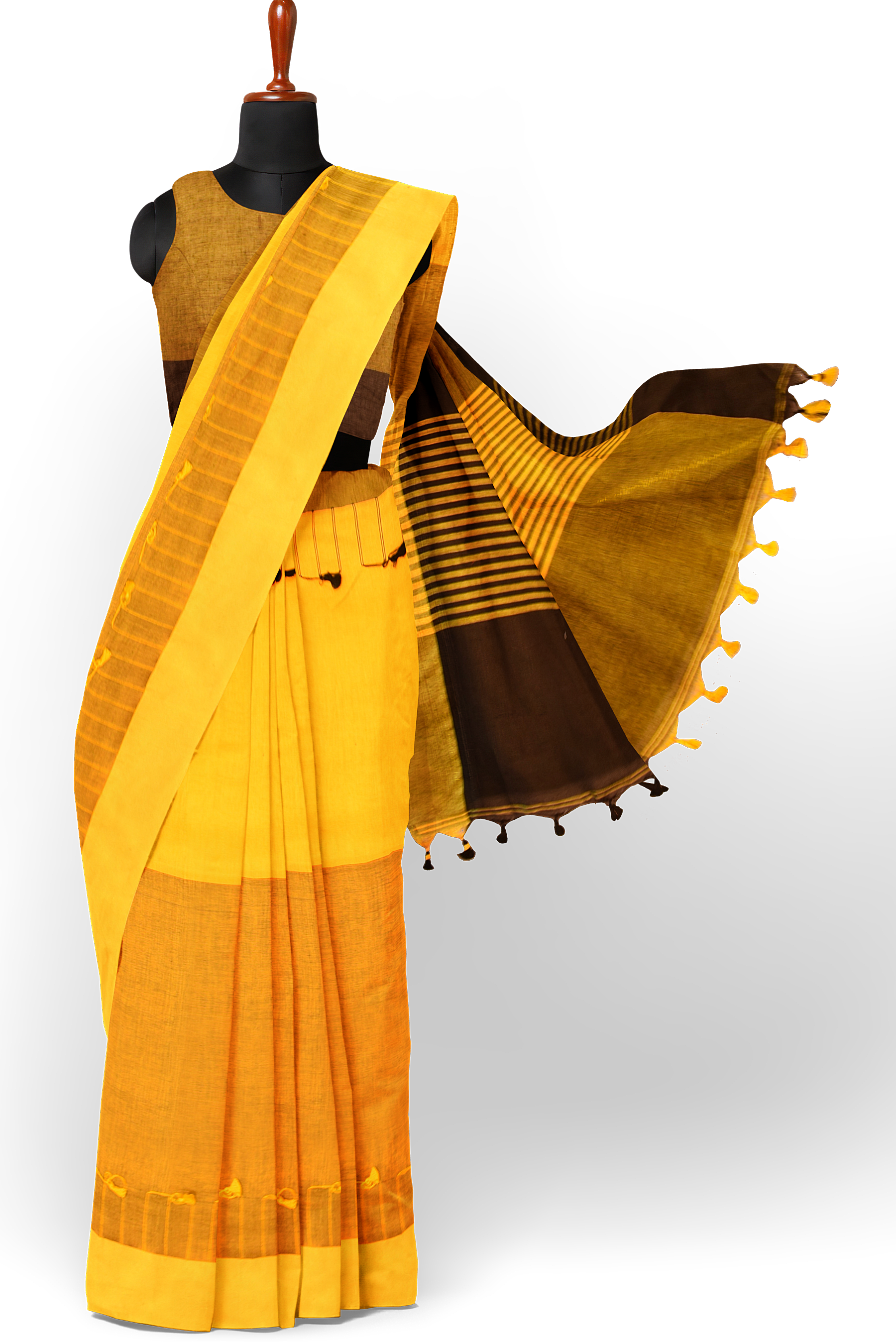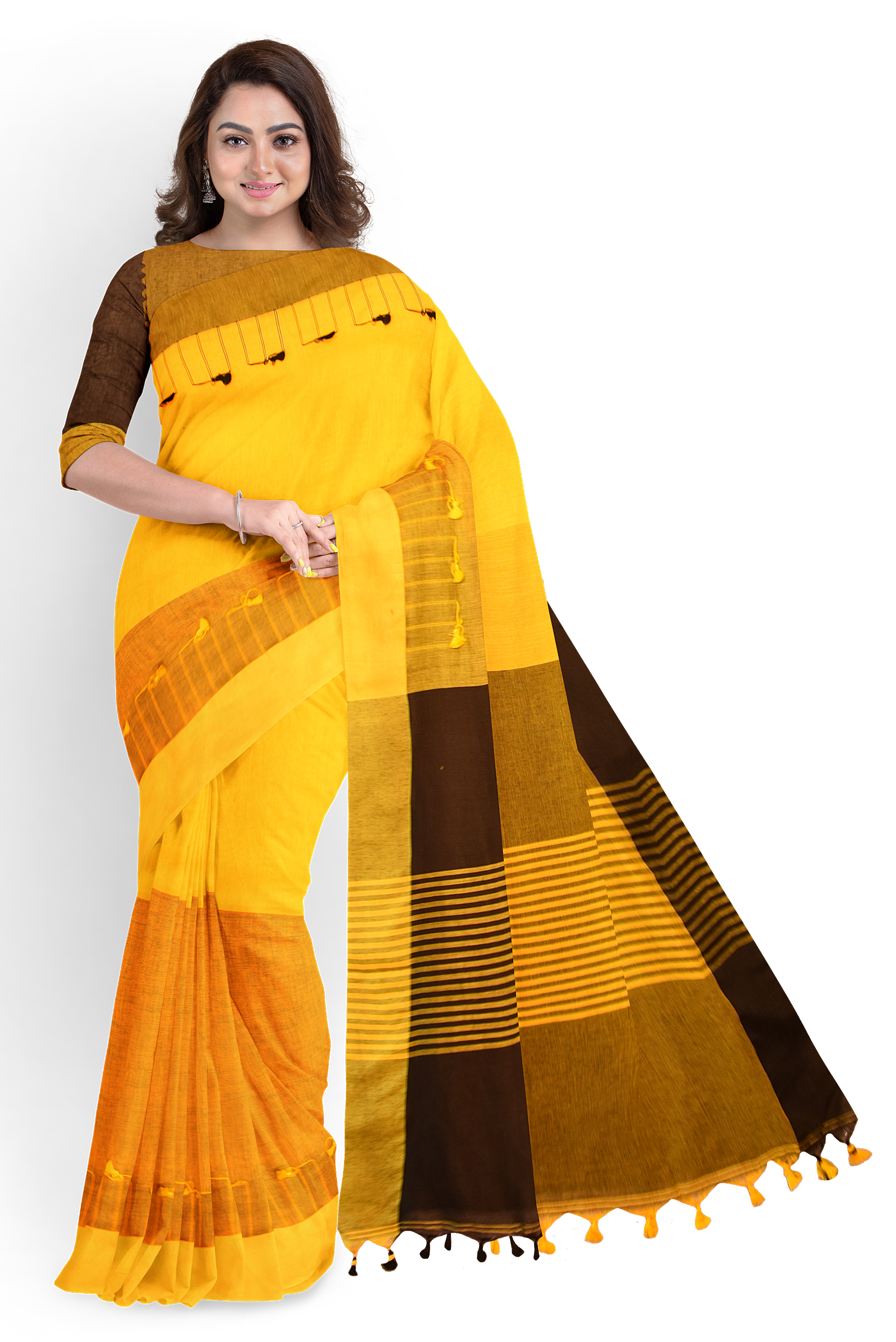 Moitreyee Black & Yellow Cotton Ikkat Saree – Handloom Elegance