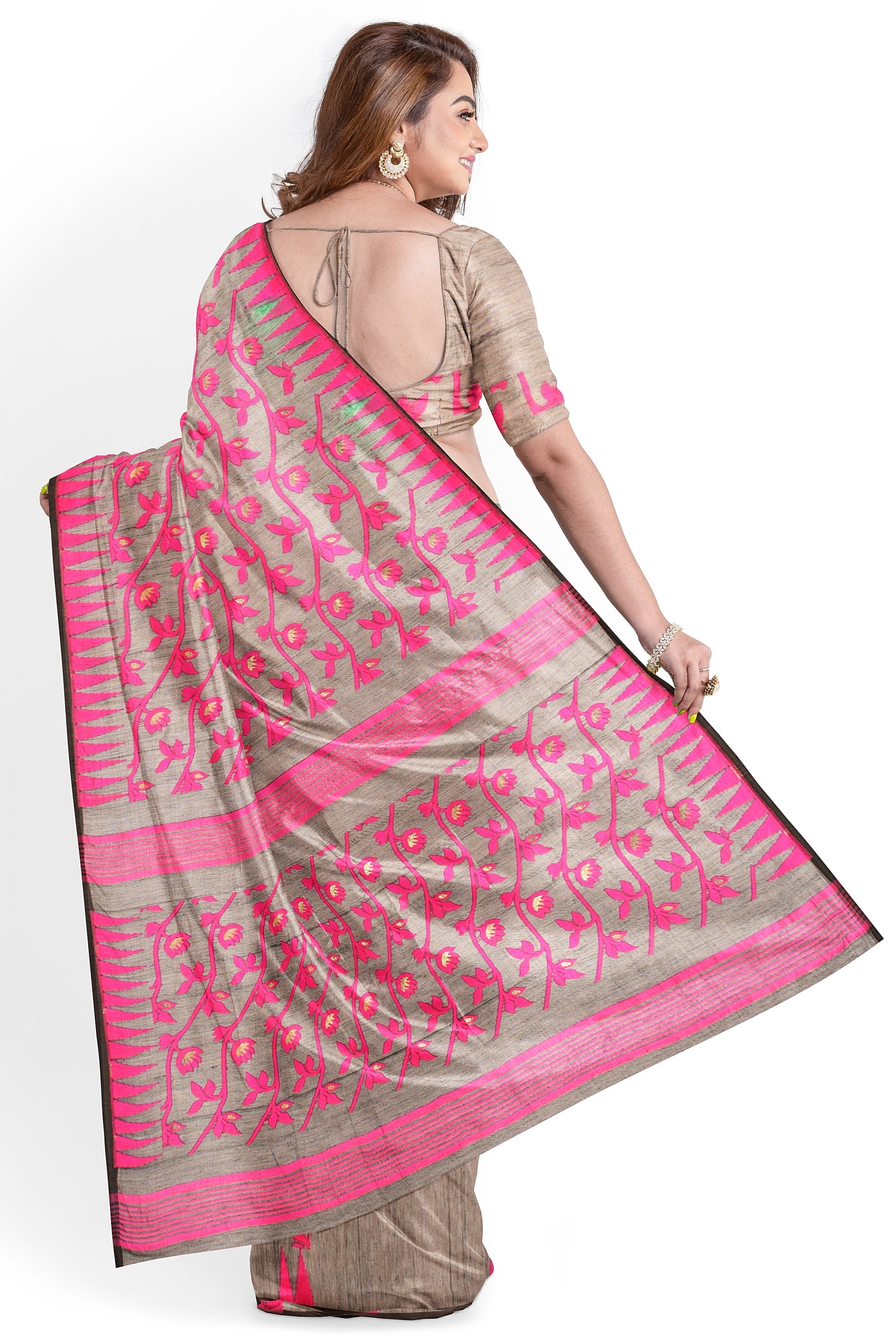 Moitreyee Soft Cotton Jamdani Pink and Black Handloom Saree