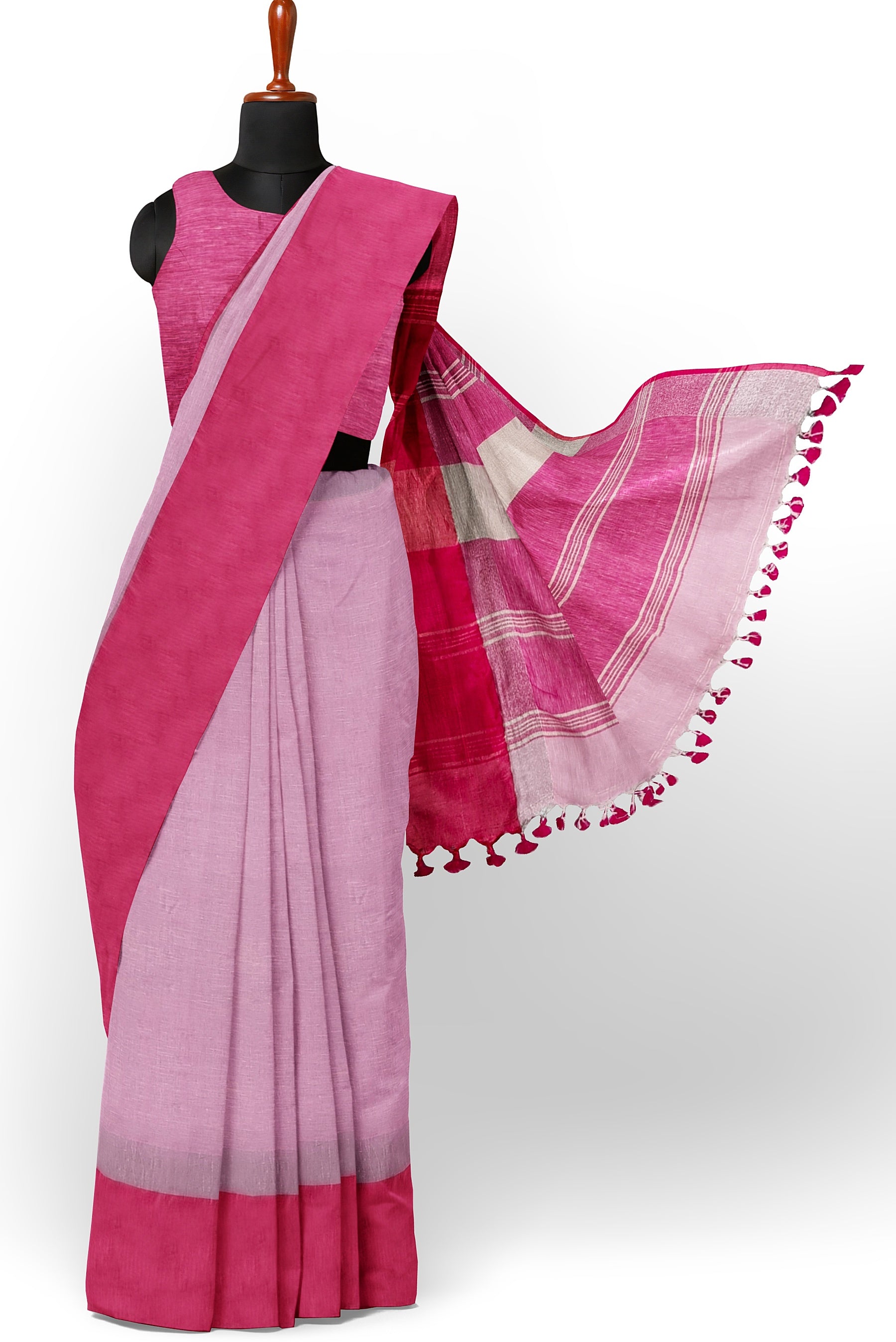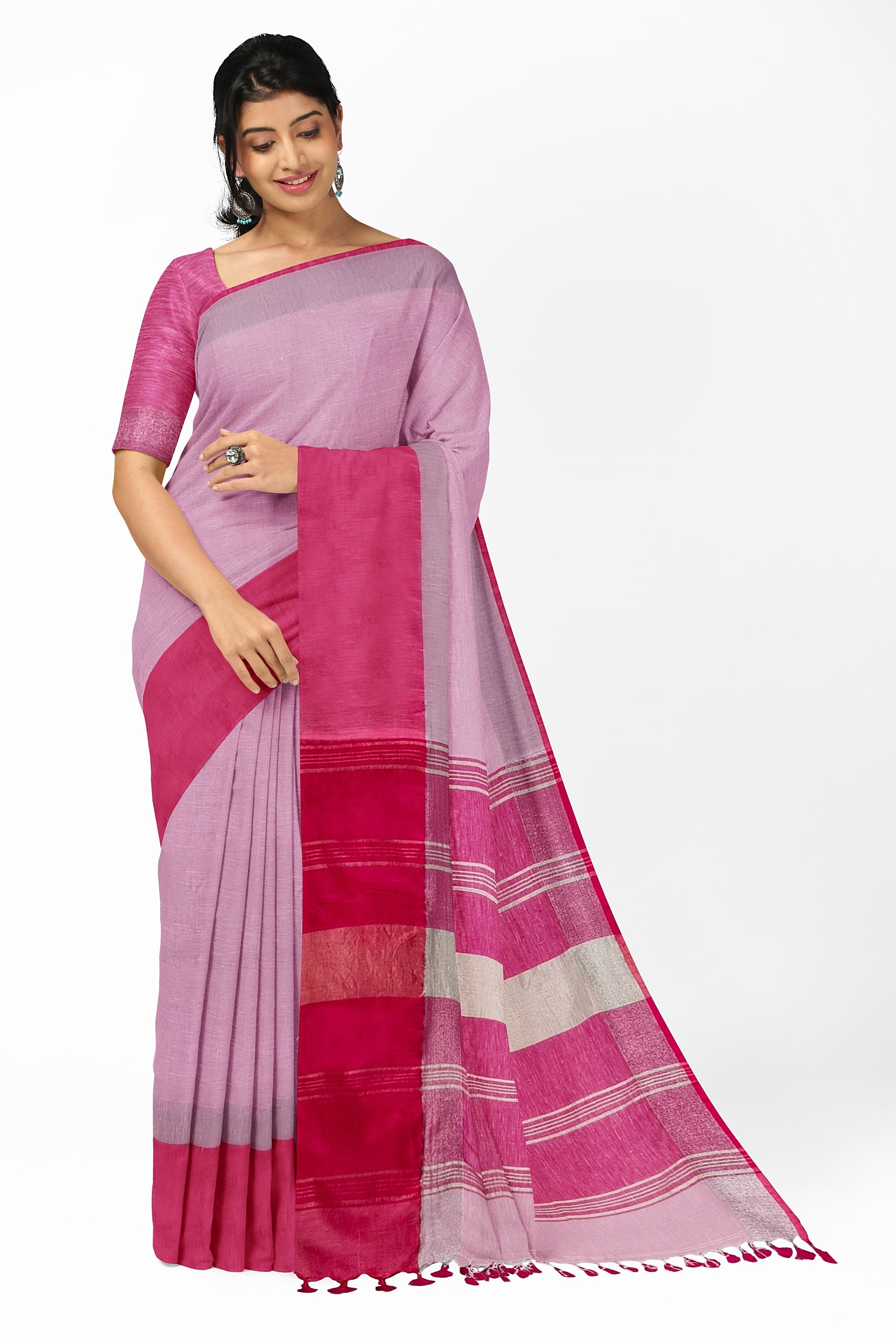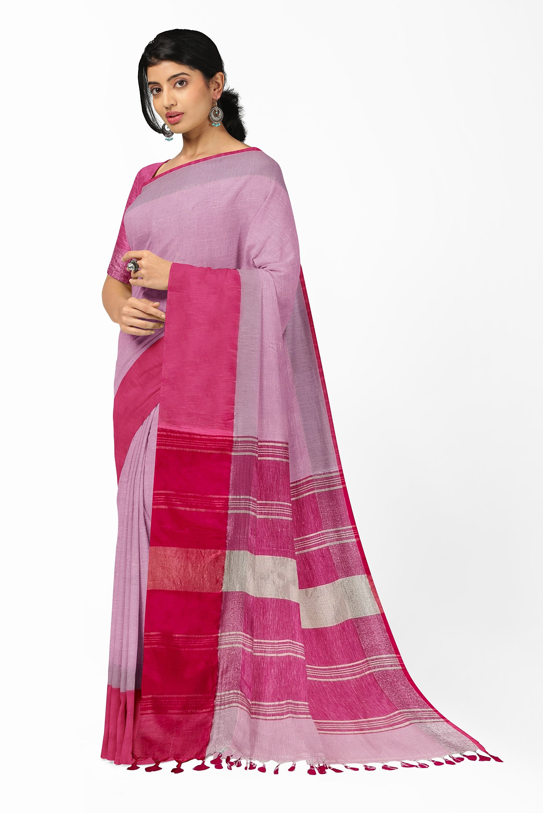 Dual-Tone Pink Linen Saree by Moitreyee β Handwoven with Par Border Detailing